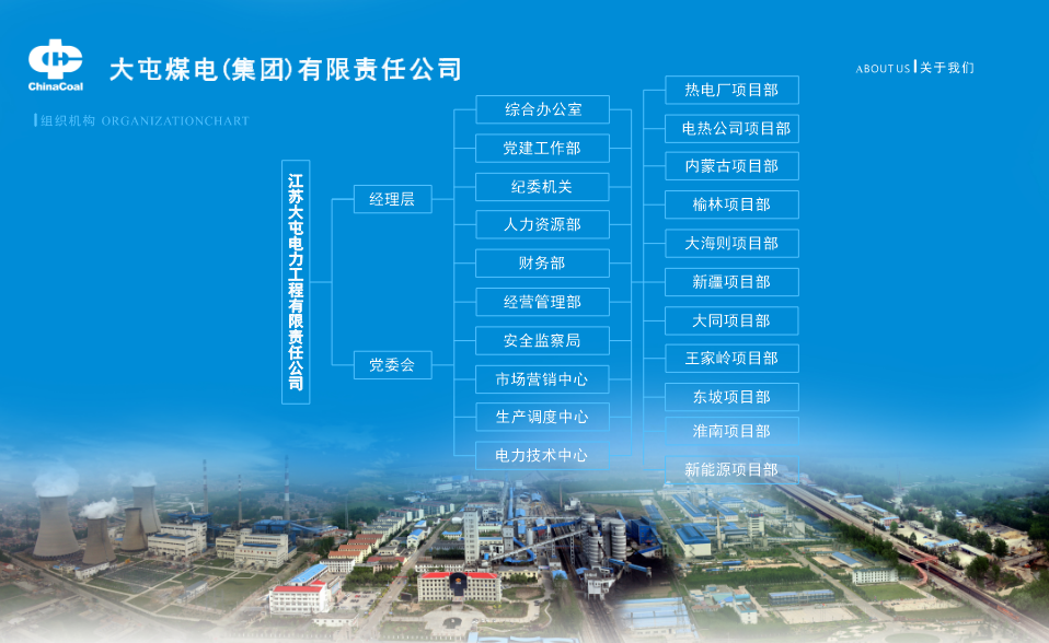 江蘇大屯電力工程有限責任公司始建于1993年,前身是大屯煤電(集團)有限責任公司(以下簡稱“大屯煤電公司”)發電廠火電設備維修公司,2013年更名為江蘇德信中大火電設備維修公司,2016年更名為江蘇大屯電力工程有限責任公司,2018年根據中國中煤發展戰略,正式組建“江蘇大屯電力工程有限責任公司”,成為大屯煤電公司的全資子公司(以下簡稱電力工程公司或公司,是集火力發電、輸變電、能源綜合利用、環保、建筑、電解鋁、工廠建設及新能源等各類工程的總承包、項目管理、安裝調試和技術服務、電站運營、太陽能發電技術服務、新興能源技術研發、培訓及維護為一體的專業化工程公司。